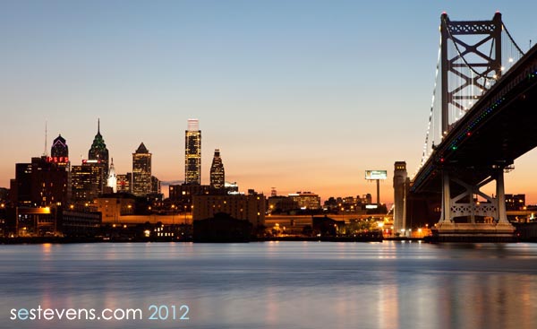 I had the pleasure of experiencing sunset and early evening on the Jersey side of the Delaware River to shoot the Philly skyline. The first two are hand-held with zoom lenses. It was a sunny and breezy all day, and skies are usually agreeable on those evenings.