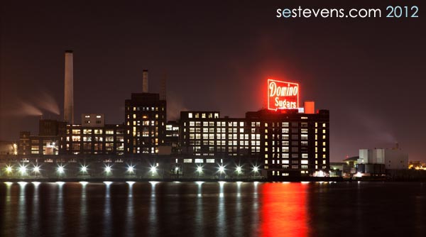 By day’s end, my phone battery was dead and the “vacation” day I intended to spend in Philly and Baltimore all but evaporated in a hectic flurry of phone calls and e-mails. During the middle of all of this, I managed to stop by and surprise my wonderful friend Lisa at her workplace, and the highlight of seeing her made the trip totally worth it. I grabbed a hotel for the night, ate, missed sunset, but decided to take night shots in Baltimore by Domino Sugars. The distant glow of lights in the photo below are from the Yankees-Orioles game at Camden Yards, which I was kicking myself for not getting tickets. But the Yanks got spanked 10-3 so maybe that was a good thing.
