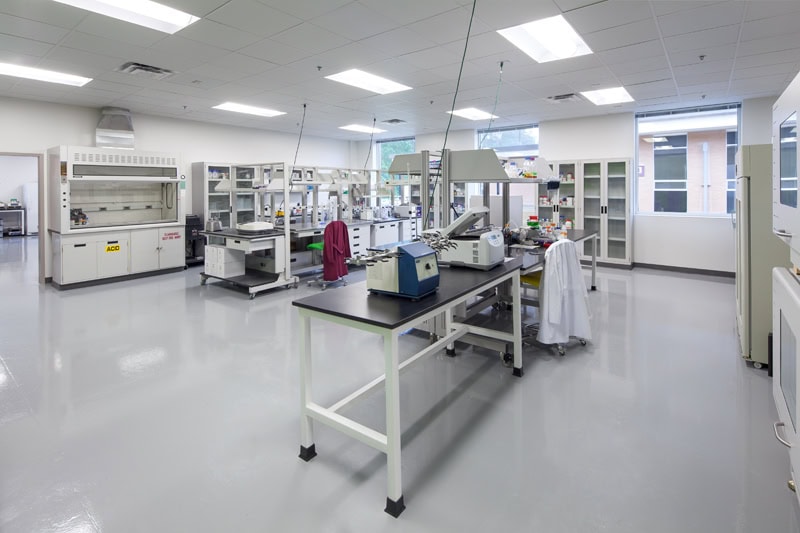 and greenhouse all the way in the back, tied to the loading dock that adjoins to the main office/lab building.