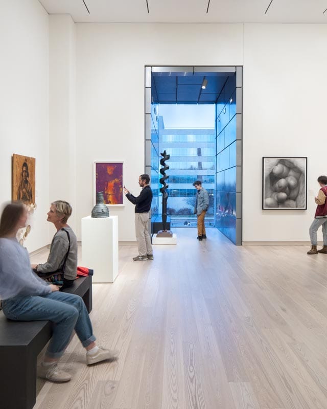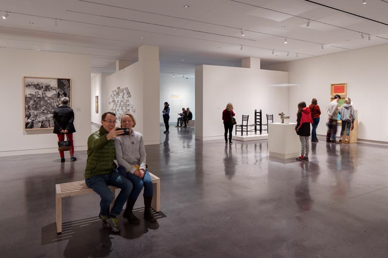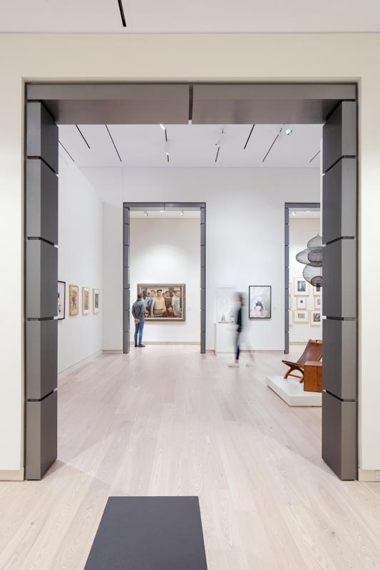 One thing that struck me immediately upon my walkthrough were the floorplates immediately past the cradle. At this one spot, visitors can orient themselves and understand how the entire museum is planned out. To me it was critical to show these plates, the materials, the lines, and how visitors interacted with both architecture and art. Installation design is not easy and what AAM accomplished here perfectly matches the architectural design.