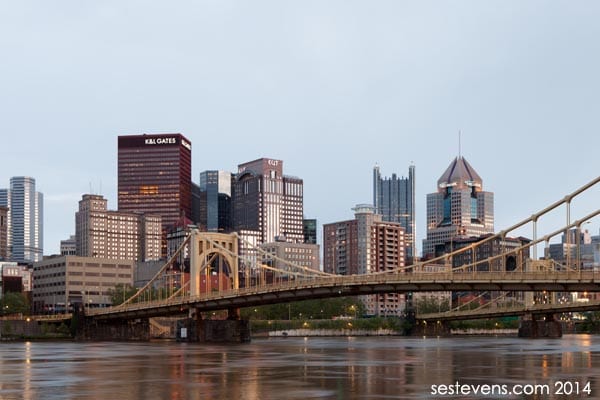 So I wandered around a bit. In my opinion the high-rises and skyscrapers in Pittsburgh don’t have much architecturally going for it, but collectively – and especially with the context of the three rivers, bridges, and hilly geography – is quite beautiful. I’ll probably take more of those shots my next trip back.