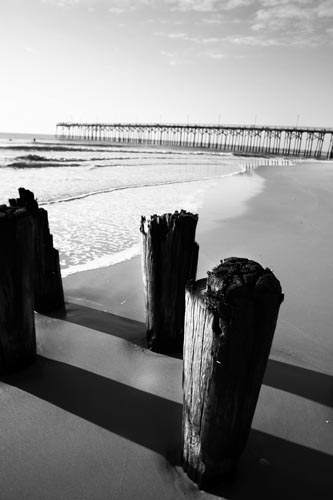 I would’ve gotten to the beach earlier if I didn’t spend about 40 minutes shooting off power lines scenes off I-40. By the way, I lost my 82mm ND8 filter somewhere around here. It never seems to be a complete trip unless I lose something. By the time I got to the beach, the sunrise light was gone. I arrived to Kure Beach around 8:00 a.m. and shot around the pier. I love the warm light and shadow the morning casts on buildings, it’s lovely just to stare at and bask in, let alone photograph.