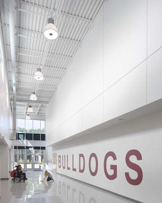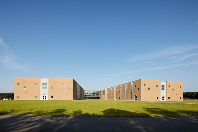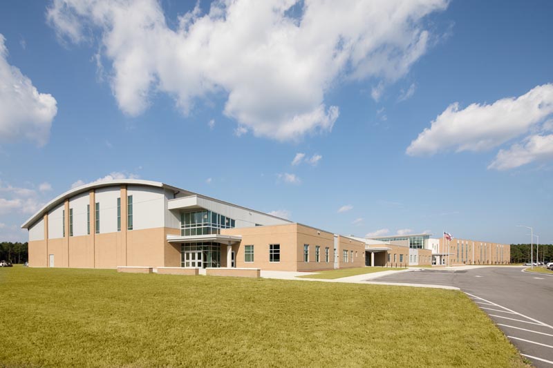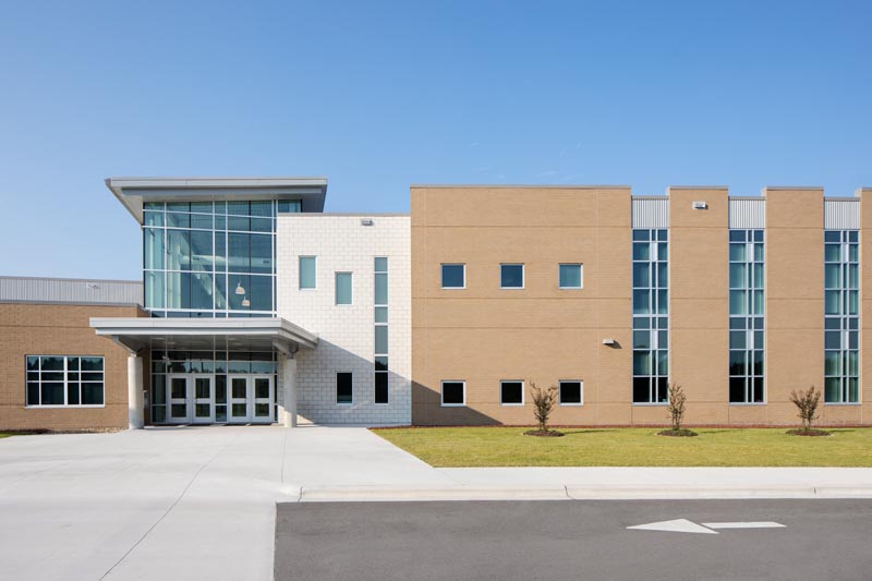 Last post I claimed we were going back to school, right? I wasn’t exaggerating! Recently I wrapped up the Dixon Middle School in Sneads Ferry, NC for Smith Sinnnett Architecture. It’s a pretty sizable school for almost 1000 students, designed for both student expansion and flexible, technology-enabled environment. This is the entire school featuring the gymnasium-side hall entry.