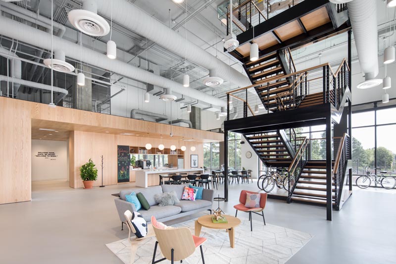 It’s been a productive year so blogs are on a time-delay, so to speak. These are a few shoots captured in downtown Durham, North Carolina late this summer. Spaces is a coworking er…space in the new 555 Mangum office building, built by McDonald York Construction. As the stairs navigate up four flights to the second floor, you can see a LOT of exposed HVAC pipes and ducts. not only from the ceiling but the wall beyond.
