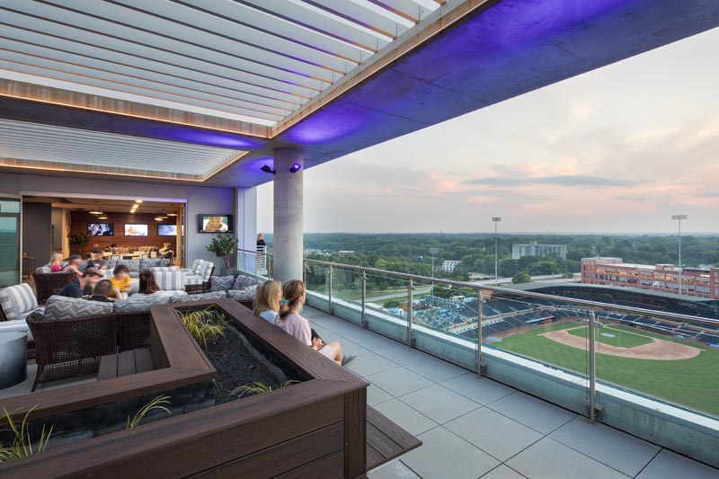 Everytime I see this building, I think “Van Halen” instead of Van Alen. Standing on top of the world, for a little while. Speaking of which, the rooftop amenity has great views of downtown Durham, and the Bulls baseball park beyond.