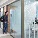 Landscape architecture features steps and ramps to accessibly accommodate for the change in grade between the two buildings. ![]()