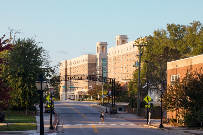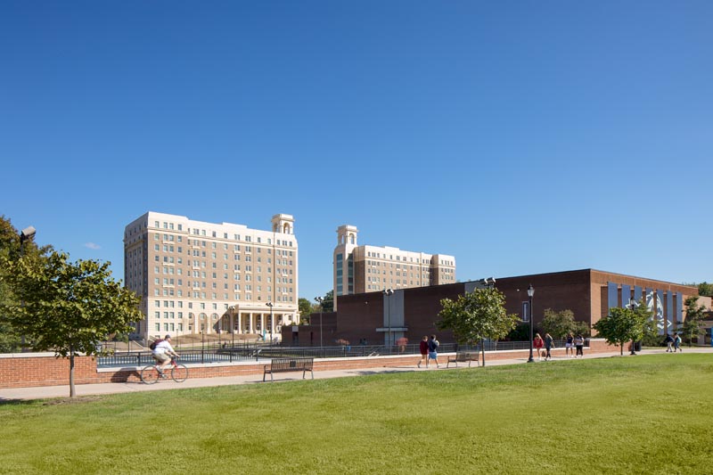 The mass and towers of these halls feature prominently from both downtown Farmville and within the college campus.![]()