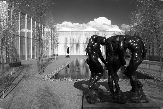 Photos from one of the zen gardens with many official Rodin sculpture replicas.