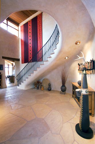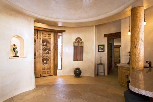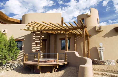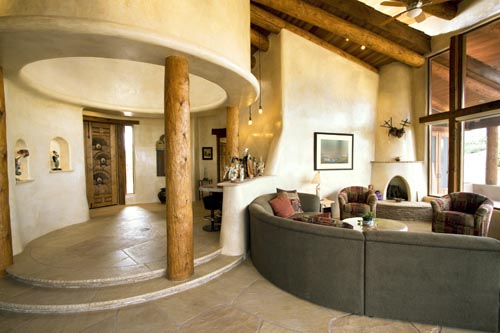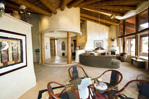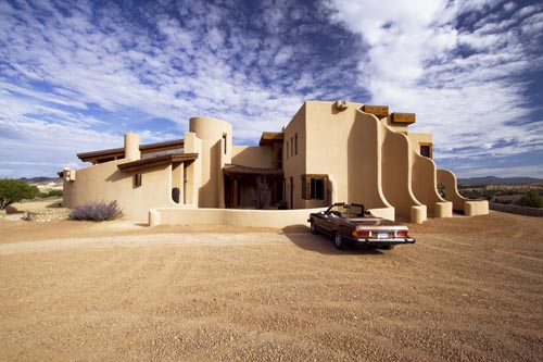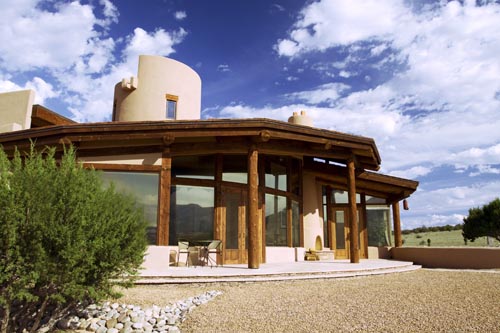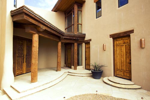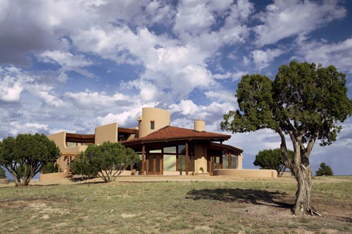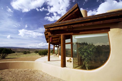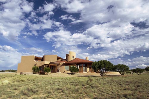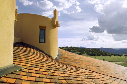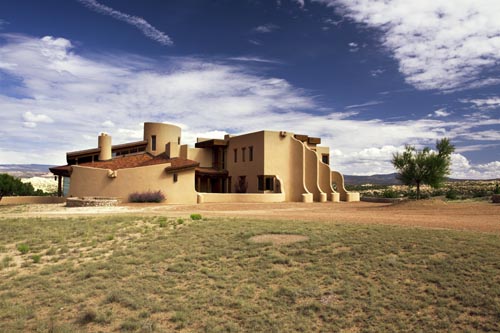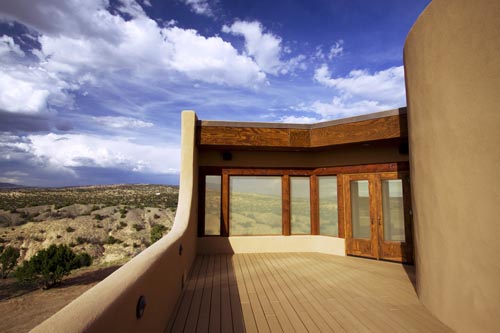 One of the neat things about having Bennett Strahan as a client is that he’s also a former boss, so we already have a solid working relationship that’s spanned almost six years. Last month, I flew out West to document one of his designs, a 5500 s.f. residence in the remote desert mountains of northern New Mexico. In shooting it, the house has become my favorite Strahan piece of architecture. No matter the geographical location of his residences, Bennett likes to blend traditional, regional vernacular with contemporary organic cues. A graduate of Taliesin, you can pick in the detail work a steady F.L. Wright influence. Here, he’s built a sculptural yet functional house that nestles in with the rugged striations of the surrounding terrain. The couple that lives here is moved in, but there’s still a few final touches and landscaping to be installed.