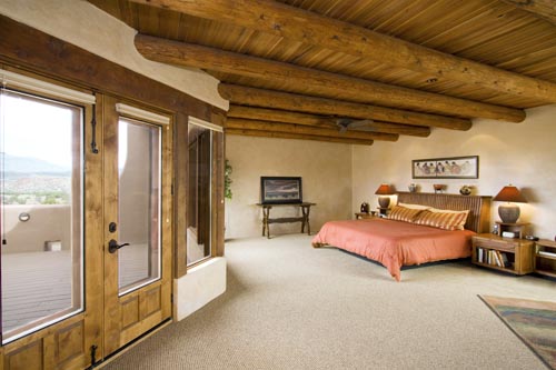 The master bedroom leads to an outdoor deck with a great 180 degree view of the surrounding mountains.