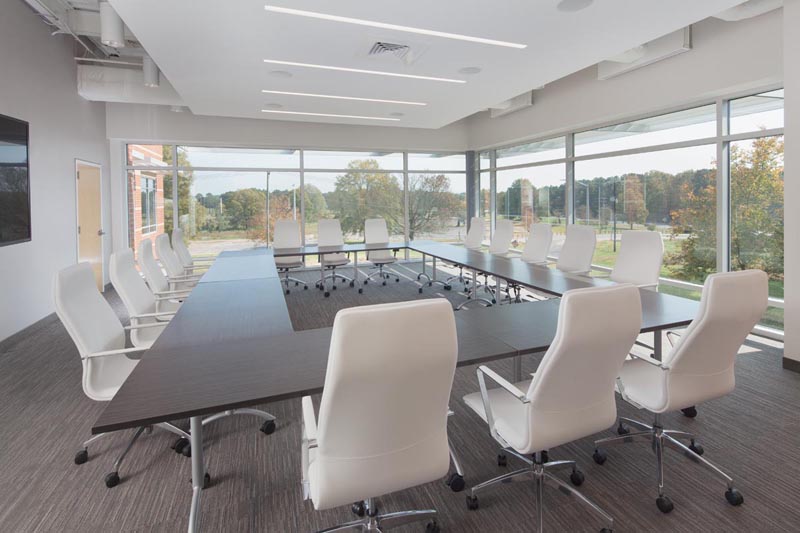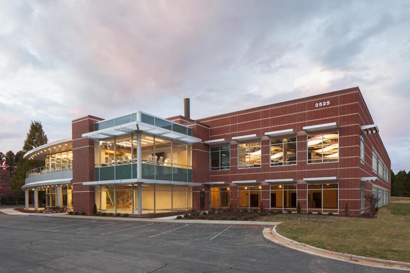 Back at again with the architects at Integrated Design, this time with an exterior & interior renovation of an old EPA building in Durham, North Carolina. The front facade was redone featuring a more dynamic elevation, increased fenestration, and shading devices.