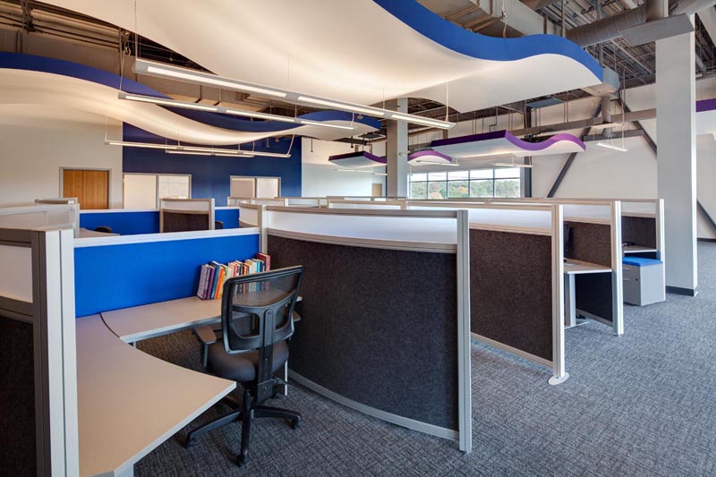 They also did an interior renovation of one of the office spaces, with these “waves” forming the ceiling.