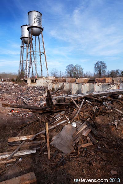 Near I-85 in Salibsury they’re doing a lot of road construction. Glad I stumbled upon the worksite on a weekday as I got to see the water towers and buildings slated for demolition (they seem half-torn down already) up close and personal. Not sure what the plans are with these twin water towers, I hope the fact they’re still standing means they might become preserved.