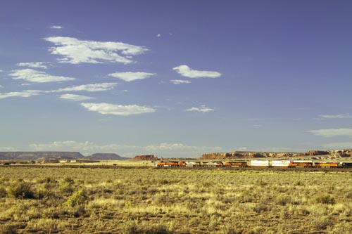 Wide expanses of railroad run parallel to I-40 as it runs west from Albuquerque. Growing up next to railroad tracks I’ve always been fascinated by trains, and the great expanse of southwestern terrain made the machines seem like a miniature railroad set.