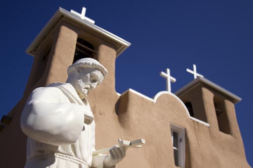 Taos. What a fun town. Here is the famous San Franciso de Asis Mission, photographed and painted by many the world over including timeless greats like Ansel Adams and Georgia O’Keefe. Having been there before (can you believe Catholic Digest is using one of my pics?), I tried getting different views of the church.