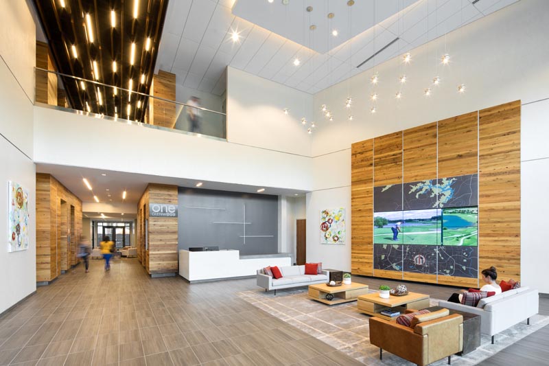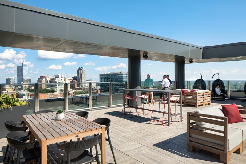 Fortunately, we were able to finally wrap up interiors this summer, capturing the lobby and tenant amenities overlooking downtown Raleigh.