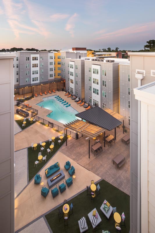 And it was all yellow. Proximity at 10th, another JDavis Architects community, are luxury student living apartments near the heart of downtown Greenville. Photography of this project was postponed a couple times due to curfew in response to civil rights’ protests and property damage along this street.