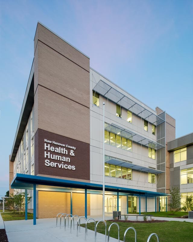 Let’s get started with two projects, Parmer RTP, photographed in late spring, and the New Hanover Health & Human Services building at beginning of summer.