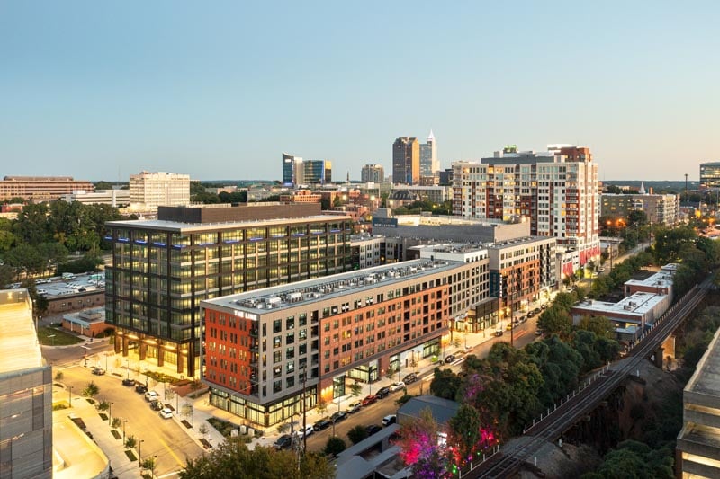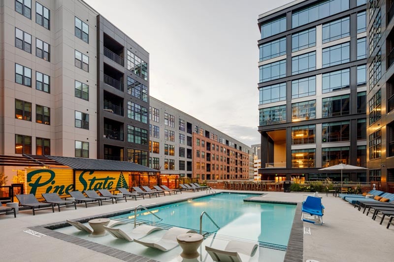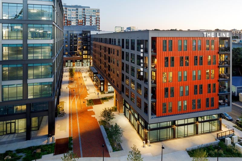 Let’s kick off 2022 with some of 2021! Last year I worked with Kane Residential to photograph The Line Apartments, part of the brand new Smoky Hollow neighborhood in downtown Raleigh, North Carolina. You may have recalled I previously captured the other major complex developed by Kane, Peace Raleigh.
