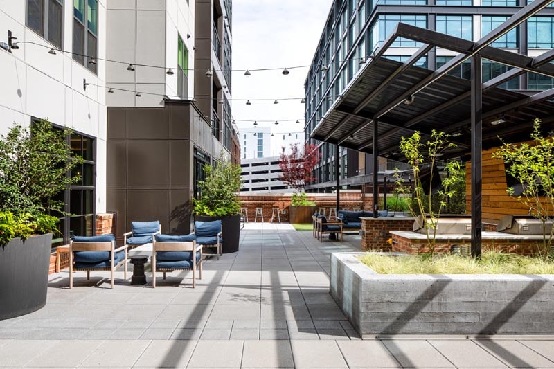 JDavis Architects did a nice job with the landscape architecture in the outdoor amenity. Always lovely to add some green to these urban spaces.