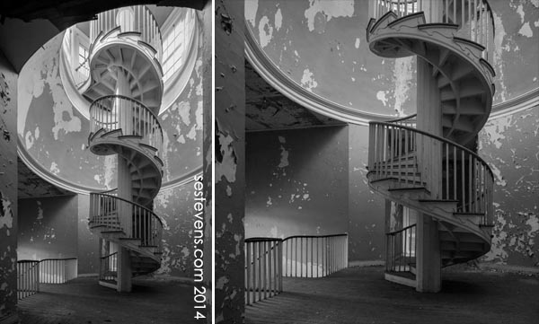 The first day I spent at one of the famous Virginia asylums. The circular stair has been making its rounds on the internet and veteran explorers know what happens to these locations when they get popular, therefore I decided to make my trip sooner than later. I wasn’t disappointed. Again, this stair has been thoroughly dissected so wasn’t going to pretend I’d add something new to the conversation. However, I made a conscious choice to present it in a way I had rarely seen it – in black and white. There’s a better understanding of light and texture with this particular stairwell, not to mention I hate the color “institutional green”.