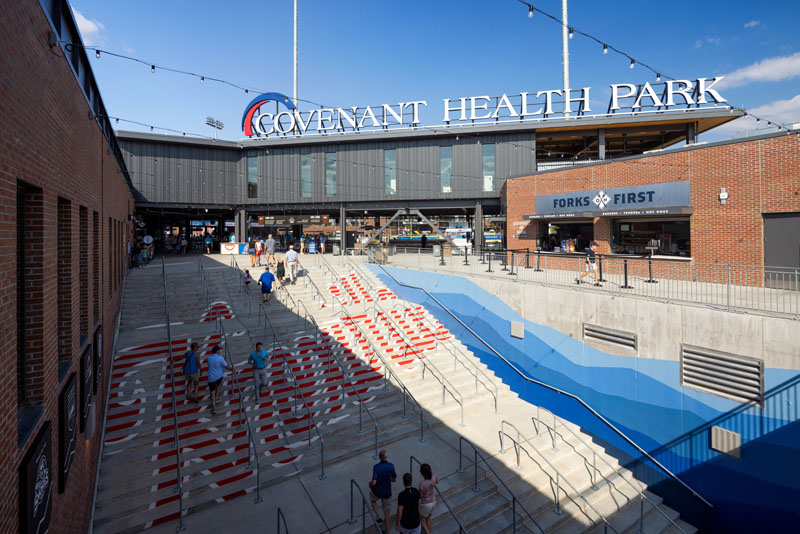 I worked with Glenn E Mitchell & Co Inc to photograph Knoxville’s new Covenant Health Park, home of the Minor League Baseball Chicago Cubs affiliate Knoxville Smokies. Barton Malow were the building contractors. Of the sports facilities I’ve photographed it’s the third professional baseball stadium I’ve gotten to capture in my career and a sincere to the Smokies for their coordinating and granting access, especially after so many weather delays this spring!